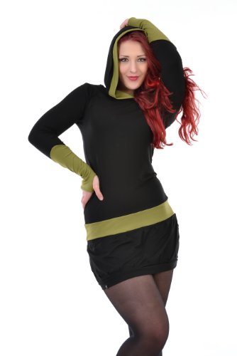 Pour les vacances, rendre heureux avec le produit 3 Elfen - noir robe à capuchon avec poignets été vert - Femme M